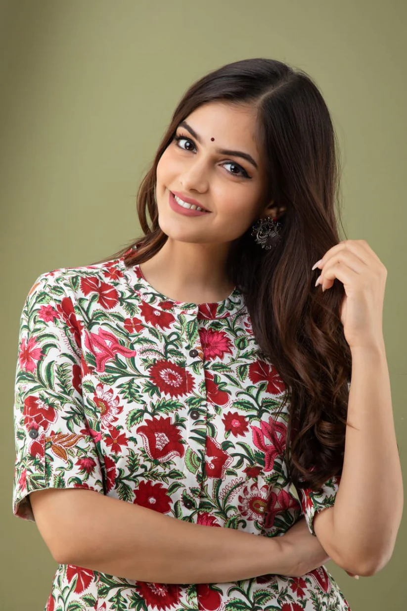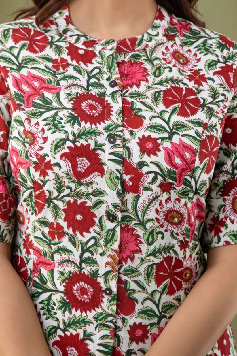 This fabric is super lightweight cotton voile a light airy feel and gets better and softer with each wash, it ages beautifully and will quickly become your favorite wear.Due to its handmade nature and the art of hand block print, it is possible to see some variations in color/misprints or small imperfections with the printing process in this fabric. This is the real beauty of this fabric.Long Elbow Length sleeves with flap looks smart and trendy.